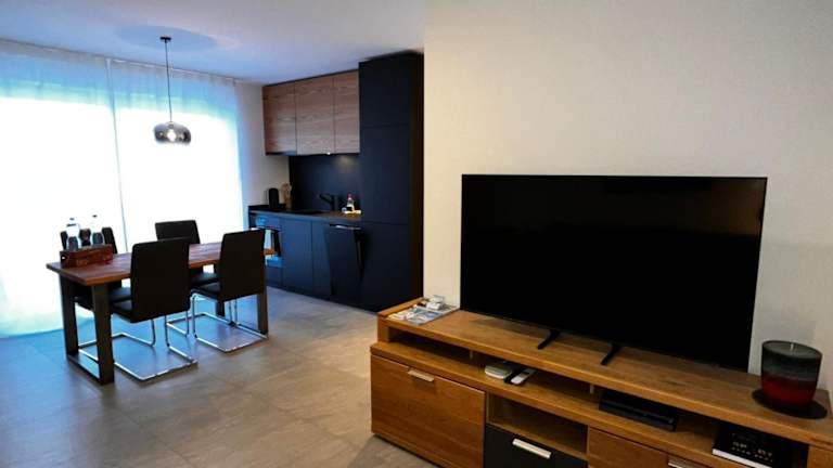 Das Apartment im Flat Cervo Holiday for Winter-Sommer Sports verfügt über ein Schlafzimmer und bietet Platz für einen komfortablen Aufenthalt. Das Wohnzimmer ist mit einem Flachbild-TV und einer Spielekonsole ausgestattet und bietet Unterhaltungsmöglichkeiten für die ganze Familie. Die voll ausgestattete Küche mit Kühlschrank ermöglicht es Ihnen, Ihre eigenen Mahlzeiten zuzubereiten. Handtücher und Bettwäsche werden im Apartment gestellt, um Ihnen einen angenehmen Aufenthalt zu ermöglichen.