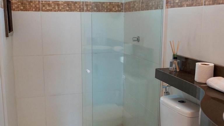 Das Chalet verfügt über 2 Schlafzimmer und 2 Badezimmer. Zur Ausstattung gehören Bettwäsche, Handtücher, ein Flachbild-TV, eine voll ausgestattete Küche sowie ein Balkon mit Meerblick. Die Unterkunft ist klimatisiert und bietet Platz für Familien.