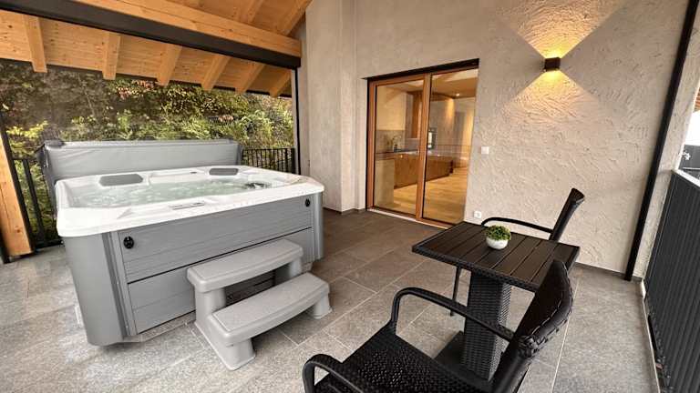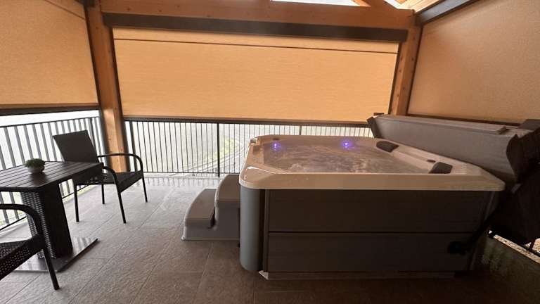 Das Chalet besteht aus einem Schlafzimmer, einem Wohnzimmer und einer voll ausgestatteten Küche mit Kühlschrank und Kaffeemaschine. Es gibt ein Badezimmer mit Dusche und Whirlpool. Zur Ausstattung gehören eine Sauna sowie ein Whirlpool. Die Unterkunft ist als Nichtraucherbereich klassifiziert.