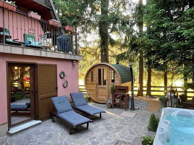 Das Chalet Calla in Mrkopalj ist ein perfekter Rückzugsort für einen erholsamen Urlaub inmitten der Natur. Mit einer finnischen Sauna, einem Whirlpool und Panoramablick bietet das Chalet eine luxuriöse und entspannende Atmosphäre. Die geräumigen Zimmer, die gut ausgestattete Küche und der Flachbild-Sat-TV sorgen für Komfort und Unterhaltung. Mit der Möglichkeit zum Skifahren, Radfahren und Wandern in der Umgebung gibt es viele Möglichkeiten, die Natur zu erkunden.