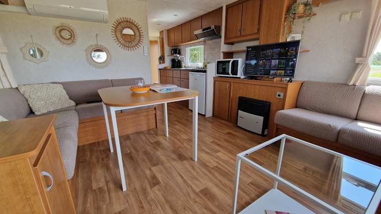 Das Chalet umfasst zwei Schlafzimmer, ein Wohnzimmer sowie eine voll ausgestattete Küche mit Kühlschrank und Kaffeemaschine. Zudem gibt es ein Badezimmer mit Dusche und Haartrockner. Handtücher und Bettwäsche werden zur Verfügung gestellt.