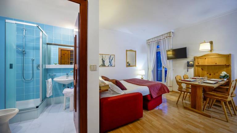 Die Unterbringung in den Zimmern erfolgt in einem angenehmen Raumklima, ausgestattet mit Teppichböden, einem Sofabett, einer Kochnische, einem Kühlschrank sowie einem Flachbild-TV. Die Badezimmer verfügen über Duschen, und Kosmetikartikel sind ebenfalls vorhanden. Es stehen Familienzimmer zur Verfügung.