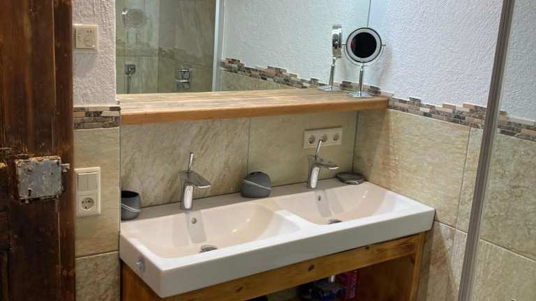 Die Ferienwohnung umfasst zwei Schlafzimmer, ein Wohnzimmer sowie eine voll ausgestattete Küche mit einem Kühlschrank. Darüber hinaus gibt es einen Essbereich und ein Badezimmer. Handtücher und Bettwäsche werden bereitgestellt.