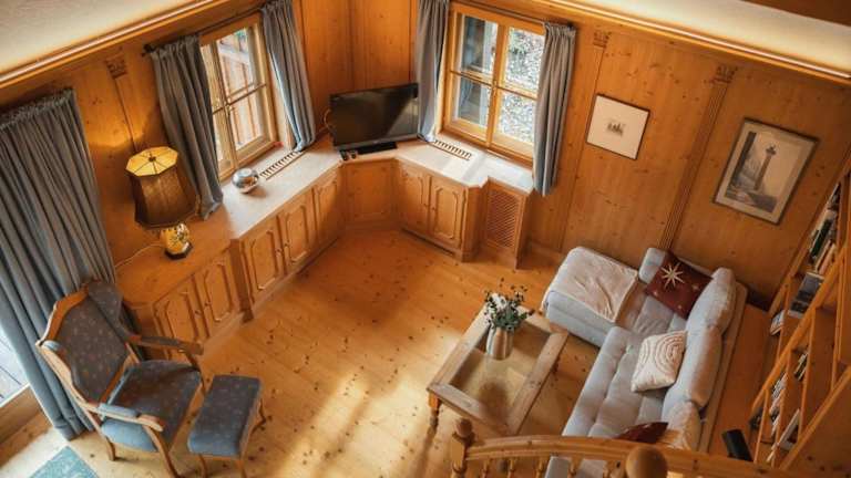Das Chalet verfügt über zwei Schlafzimmer und ein Badezimmer. Es sind Bettwäsche und Handtücher vorhanden. Neben einer voll ausgestatteten Küche bietet das Ferienhaus auch einen Essbereich sowie kabelfernsehen. Die Terrasse garantiert einen Blick auf die umliegenden Berge.