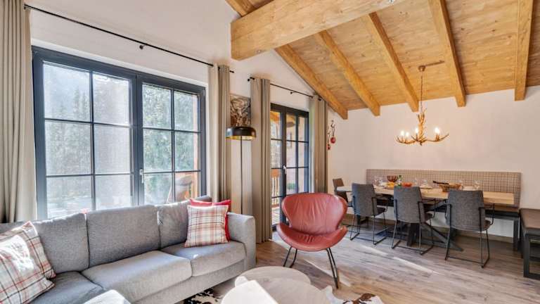 Das Chalet verfügt über 4 Schlafzimmer, ein Wohnzimmer, einen TV, eine gut ausgestattete Küche mit Kühlschrank und Geschirrspüler sowie 3 Badezimmer mit Dusche. Zusätzlich gibt es einen Balkon mit Bergblick.
