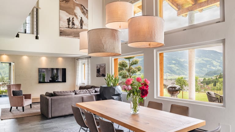 Befreit. Berührt. Begeistert. CHALET ISABELLA - IHR LUXUSCHALET IM ZILLERTAL. Absolute Ruhe, ein traumhafter Panoramablick, Lounge und Terrasse inmitten der Tiroler Berge. Eine anspruchsvolle Architektur in einer beeindruckenden Alpinen Landschaft – im Chalet Isabella wohnen Sie mit bis zu 12 Personen auf 200 m² Wohnfläche - modernstes Interieur und Technik mit viel Licht und höhe Räume mit Sichtdachstuhl & Gallerie. - Einfach viel Platz. Genießen Sie höchsten Wohnkomfort auf 200 m² Wohnfläche mit traumhafter Lichtdurchflutung, hohen Wohnräumen. Ideal für Sonnenanbeter und alle Liebhaber der alpinen Landschaft und Tiroler Bergwelt. - Megacooler Weitblick. Durch die Architektur des Chalet mit einer Glasfassade mit viel Licht fühlt man sich inmitten der Natur und hat von allen Räumen einen grandiosen Ausblick auf die Zillertaler Berge. Der riesige Garten mit großer Terrasse - Loungemöbel, Sonnenliegen und Grünfläche lädt zum Träumen und Entspannen ein. - Luxuriös Wohnen. Alle Schlafzimmer verfügen über hochwertige Boxspring Betten sowie Flat TV und bieten durch den Sichtdachstuhl ein tolles Raumgefühl. Die Badezimmer sind alle mit einer begehbaren Regendusche als Duschgrotte ausgestattet. - Feinstes Alpines Design. Die Ausstattung und Innenarchitektur im Chalet wurde mit sehr viel Liebe im Alpinen Lifestyle Design und modernster Technik ausgestattet. - Echter Rückzugsort und absolute Ruhe. Die Lage des Chalet besticht durch die Alleinlage am Waldrand auf einem leichten Bergplateau mit einem traumhaften Ausblick auf die Zillertaler Alpen. Der Standort am Talboden ist sehr zentral und sind alle Ausflugsziele im Winter & Sommer im Zillertal gut erreichbar. NEU! Megacooles Highlight ist der neue Private Spa mit Panoramasauna in Altholz - mit direktem Zugang aus dem Wohnbereich ist ein grandioser Ausblick über das Zillertal in der heimeligen Biosauna mit viel Platz garantiert! Erleben Sie Urlaub in den Alpen in einer einzigartigen Umgebung in einer der schönsten und luxuriös eingerichteten Ferienhäuser mit einem einmaligen Blick über den Talboden und die Bergwelt des Zillertals. Ihre Familie Isabella Haas