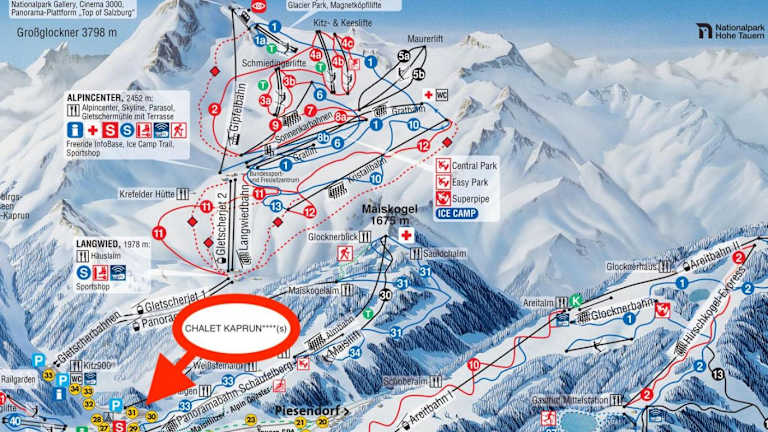 Das Chalet Kaprun liegt in einer ruhigen Lage, etwa 4,5 km vom Kitzsteinhorn-Gletscher entfernt. Die Umgebung bietet zahlreiche Möglichkeiten für Outdoor-Aktivitäten wie Skifahren und Wandern. Die Almbahn und der Maiskogel-Skilift sind in der Nähe und bieten bequemen Zugang zu den Pisten. Der Flughafen Salzburg ist etwa 62 km entfernt.