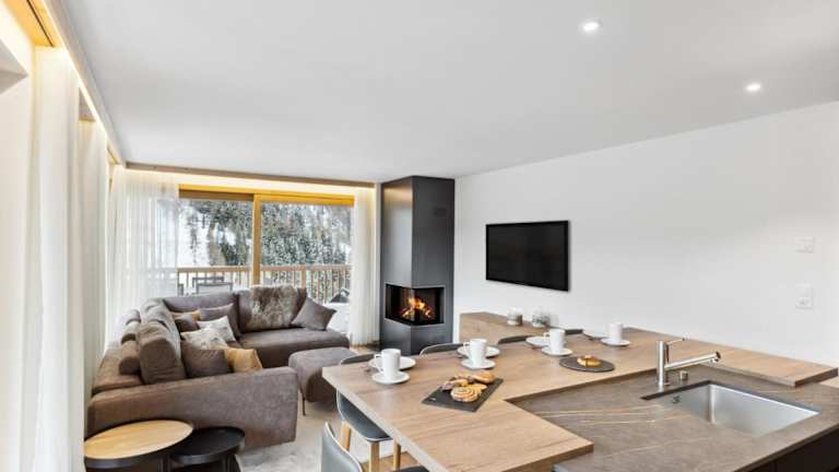 Die Apartments im Chalet Les Rahâs by Mrs Miggins sind elegant eingerichtet und bieten einen hohen Komfort für Ihren Aufenthalt. Die raumhohen Fenster ermöglichen einen beeindruckenden Blick auf die umliegenden Berge und der Balkon oder die Terrasse mit Whirlpool sind perfekte Orte, um sich zu entspannen und die Aussicht zu genießen. Die Fußbodenheizung sorgt für angenehme Wärme und die voll ausgestattete Küche ermöglicht es Ihnen, Ihre Mahlzeiten bequem zuzubereiten. Der Kamin und der gemütliche Wohnbereich laden zum Entspannen ein.