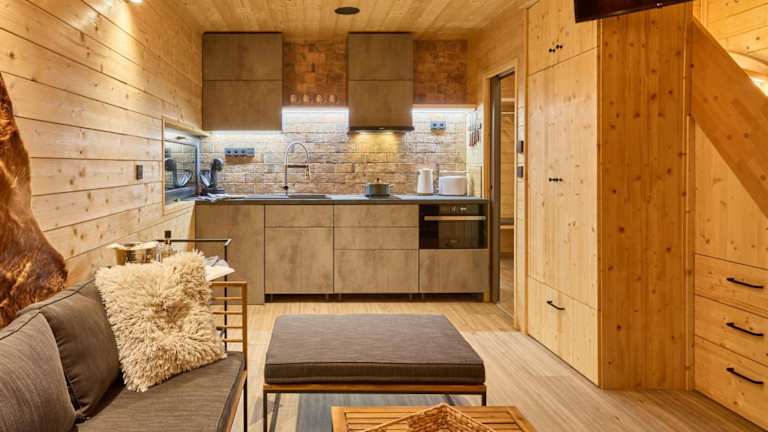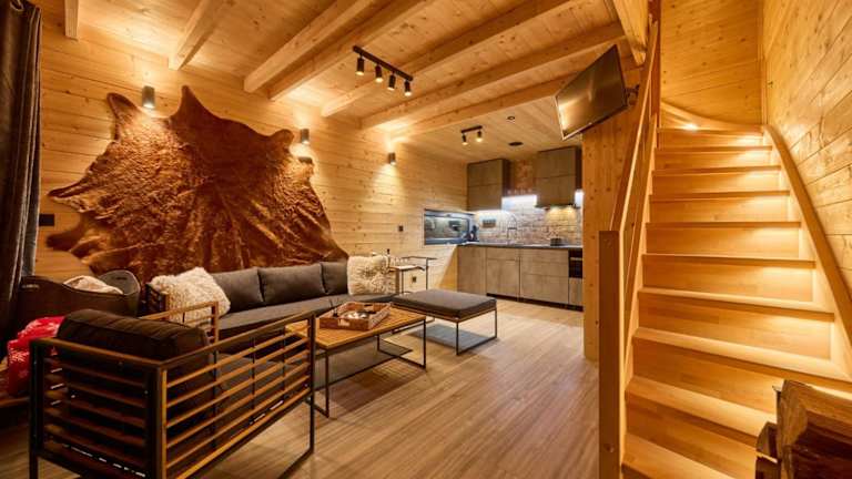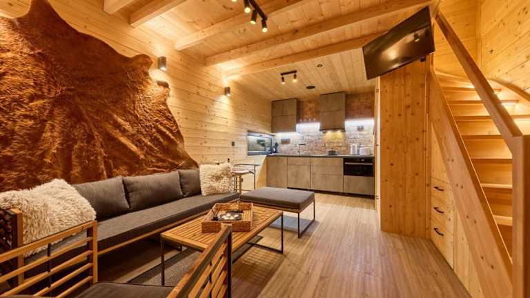 Das Chalet besteht aus zwei Schlafzimmern, einem Wohnzimmer und einer voll ausgestatteten Küchenzeile, die mit einem Kühlschrank und einer Kaffeemaschine eingerichtet ist. Ein Badezimmer mit Dusche und ein TV sind ebenfalls vorhanden. Bettwäsche, Handtücher und Wäsche werden nach den Richtlinien der örtlichen Behörden gewaschen.