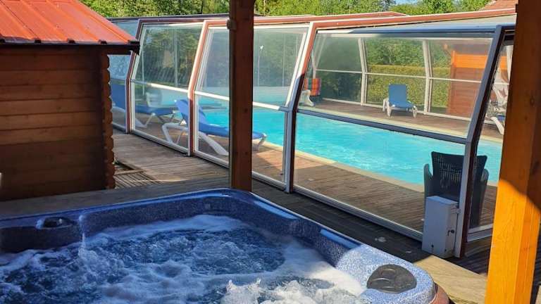Das Chalet verfügt über drei Schlafzimmer, ein Wohnzimmer und eine gut ausgestattete Küche mit Kühlschrank und Geschirrspüler. Zu den weiteren Annehmlichkeiten gehören ein Flachbild-TV, ein Badezimmer mit Dusche sowie eine Terrasse mit Poolblick. Die Unterkunft ist mit einer Heizung ausgestattet und bietet kostenloses WLAN in allen Bereichen.