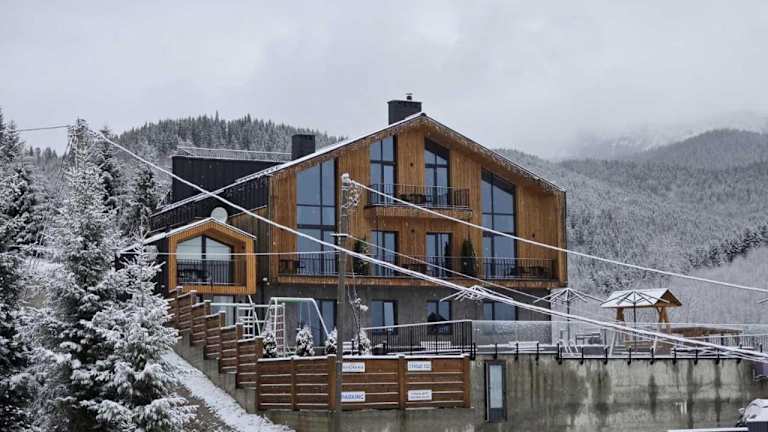Verbringen Sie einen unvergesslichen Aufenthalt im Chalet Panorama (Апартаменти) in Palyanytsya. Genießen Sie die atemberaubende Aussicht auf die Berge und entspannen Sie im Infinity-Pool. Die geräumigen Apartments bieten modernen Komfort und eine gut ausgestattete Küche. Skifahren und Wandern sind direkt vor der Haustür möglich. WLAN und Parkplätze stehen Ihnen kostenlos zur Verfügung.