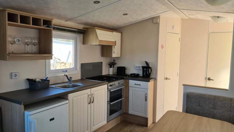 Die Ferienwohnung verfügt über ein Schlafzimmer, ein Wohnzimmer, ein Badezimmer mit Dusche und kostenlosen Pflegeprodukten, sowie eine voll ausgestattete Küche, die aus einem Kühlschrank und einem Wasserkocher besteht. Handtücher und Bettwäsche sind ebenfalls verfügbar.