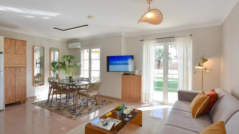 Die Unterkunft verfügt über eine Klimaanlage und besteht aus zwei Schlafzimmern, einem Wohnzimmer und einer voll ausgestatteten Küche mit Kühlschrank und Kaffeemaschine. Das Badezimmer ist mit einer Dusche und einem Haartrockner ausgestattet. Handtücher und Bettwäsche werden zur Verfügung gestellt. Grillmöglichkeiten sind vorhanden.