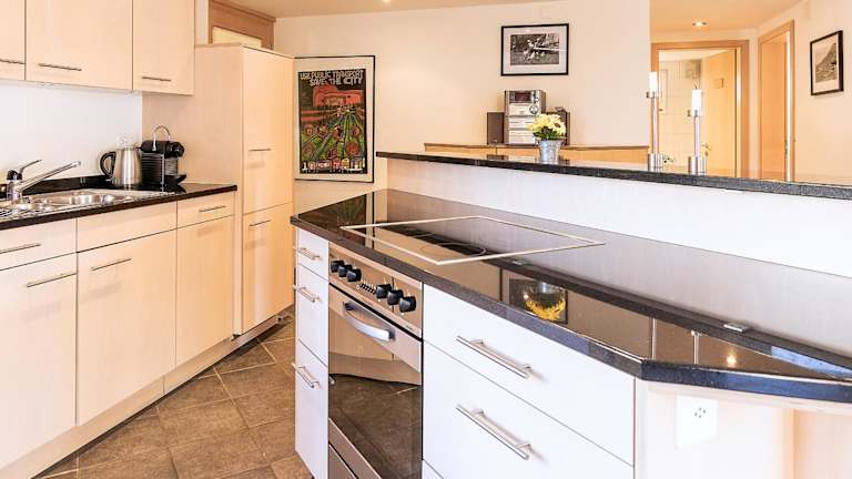 Die Ferienwohnung bietet zwei Schlafzimmer und zwei Badezimmer. Zur Zimmerausstattung gehören Bettwäsche, Handtücher, ein Fernseher mit Satellitenkanälen und eine voll ausgestattete Küche.
