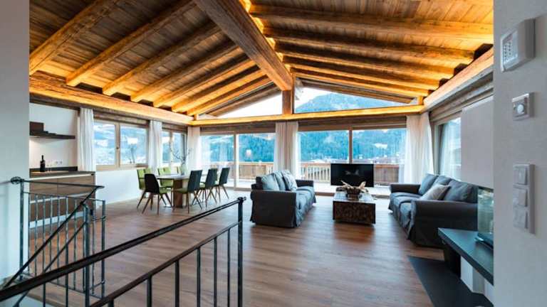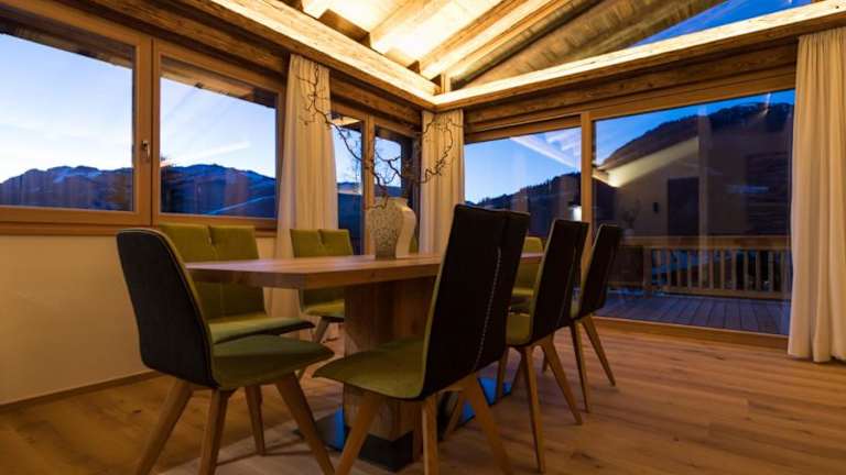 Das Chalet Wegmacher besticht durch seine gemütliche Atmosphäre und die hochwertige Ausstattung. Das Chalet ist mit Massivholzmöbeln und einem offenen Dachstuhl eingerichtet und verfügt über ein großes Wohnzimmer mit offenem Kamin, eine Küchenzeile und ein großes Panoramafenster, das einen herrlichen Blick auf die Umgebung bietet. Jedes der 4 Schlafzimmer verfügt über ein eigenes Badezimmer mit Dusche und WC.