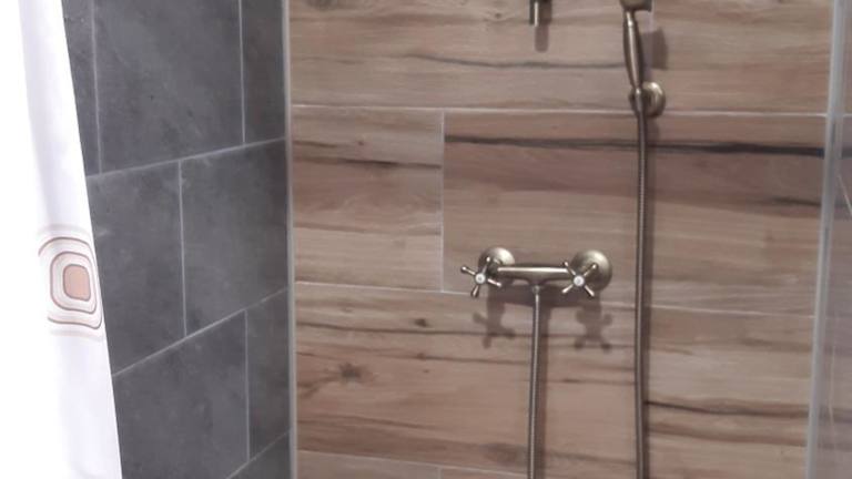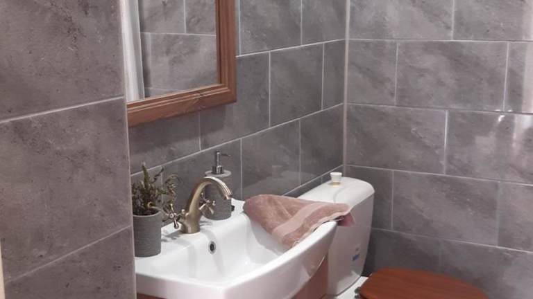 Das Ferienhaus übernachtet Gäste in zwei Schlafzimmern. Es umfasst einen Flachbild-TV und ein Badezimmer mit Dusche. Handtücher und Bettwäsche werden bereitgestellt.