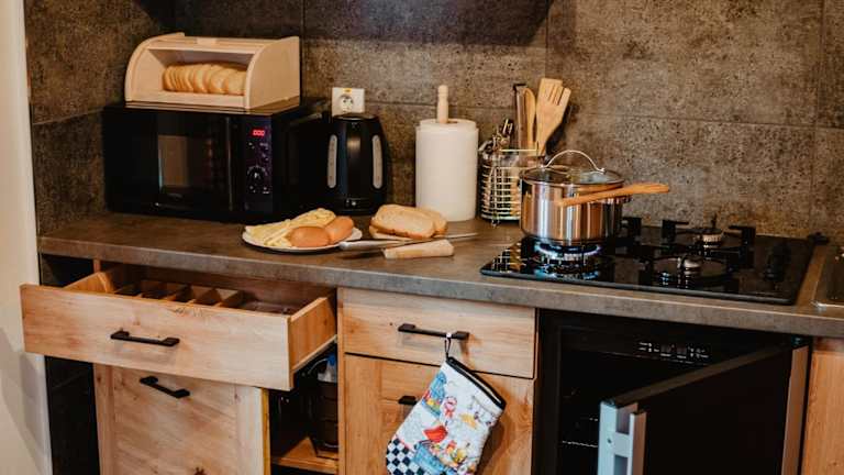 Das Chalet bietet eine Gemeinschaftsküche, in der Sie Ihre eigenen Mahlzeiten zubereiten können. Alternativ können Sie auch den Grill im Garten nutzen, um im Freien zu kochen und zu essen. In der Umgebung gibt es auch Restaurants und Cafés, in denen Sie lokale Spezialitäten genießen können.