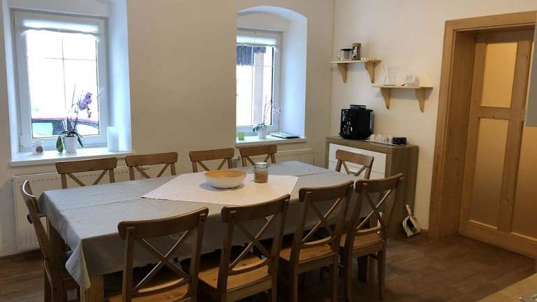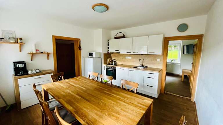 Chalupa Měděnecká bietet Übernachtungsmöglichkeiten in einem Ferienhaus mit einem Garten, kostenlosem WLAN, einer Gemeinschaftsküche und einer Gemeinschaftslounge. Die Unterkunft verfügt zudem über Grillmöglichkeiten und kostenlose Privatparkplätze.