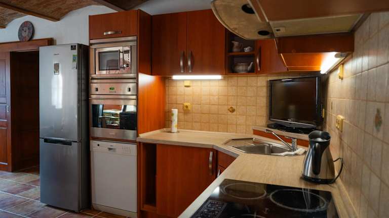 Eine Gemeinschaftsküche steht zur Verfügung, die mit einem Kühlschrank, einem Geschirrspüler und einem Ofen ausgestattet ist. Gäste können ihre eigenen Mahlzeiten zubereiten und im Essbereich des Wohnraums genießen.