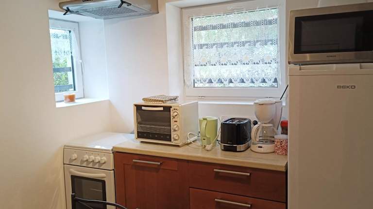 Die Privatunterkunft bietet komfortable Zimmer mit einem Flachbild-TV und kostenfreiem WLAN. Die Gemeinschaftsküche ist mit allen notwendigen Geräten ausgestattet, darunter ein Kühlschrank, ein Backofen, eine Mikrowelle, eine Kaffeemaschine und ein Wasserkocher. Hier können Sie Ihre eigenen Mahlzeiten zubereiten und sich wie zu Hause fühlen.