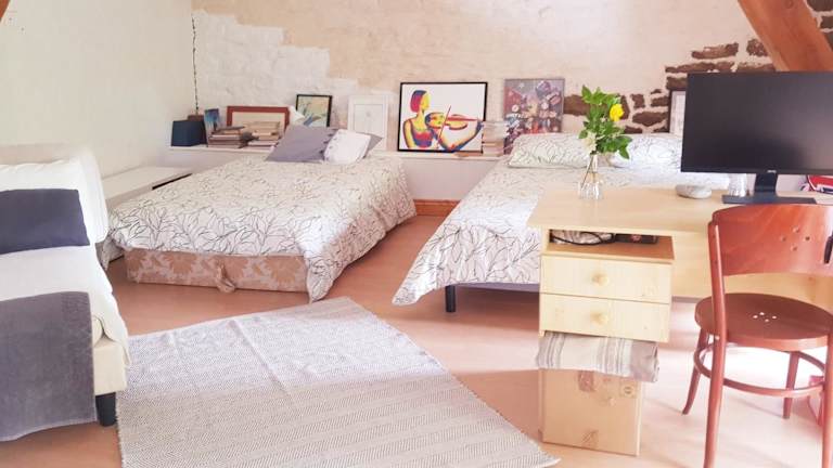 Die Unterkunft chambre familiale 4 pers SDB partagée sans TV bietet einen Garten, eine Terrasse sowie einen Conciergeservice. WLAN und ein Privatparkplatz sind kostenfrei verfügbar. In der Unterkunft sind Junggesellen- oder Junggesellinnenabschiede nicht gestattet, und Haustiere sind nicht erlaubt.