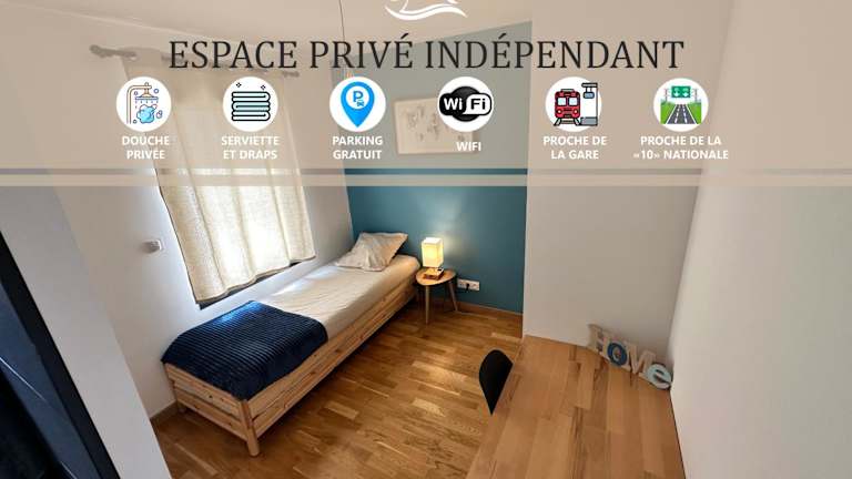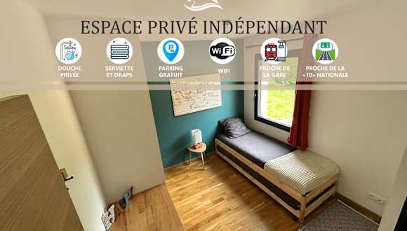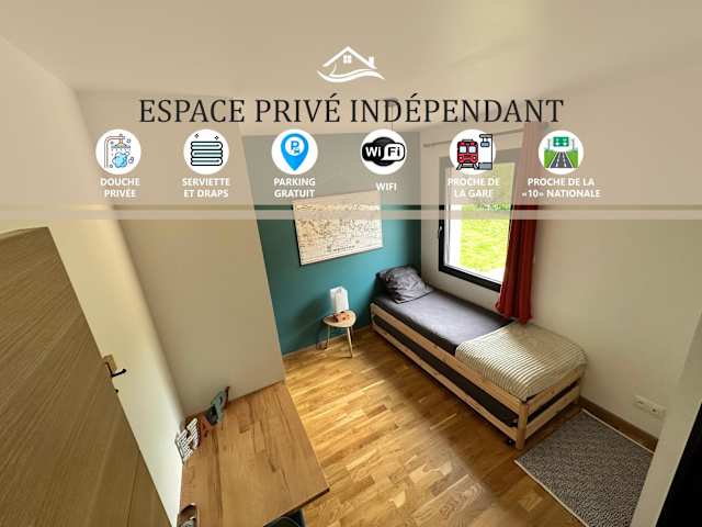 Chambre privée au calme - Proche gare - Parking gratuit ist eine Nichtraucherunterkunft, die Übernachtungsmöglichkeiten bietet und über einen Garten verfügt.
