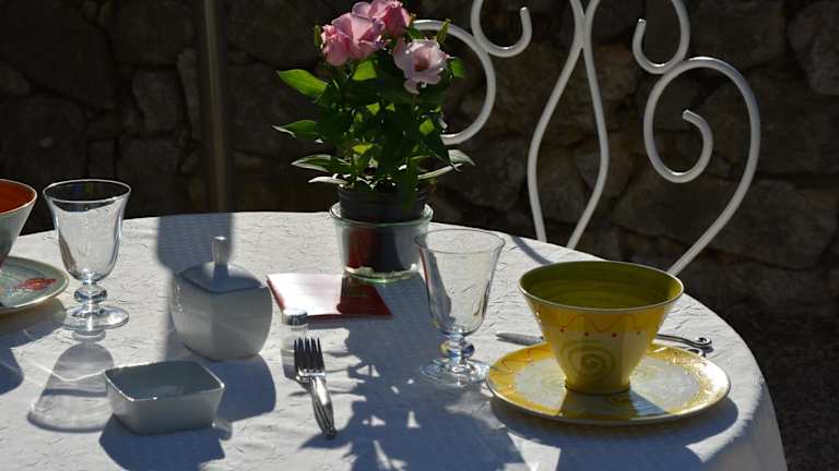 Das Le Mas des Aludes bietet ein köstliches hausgemachtes Frühstück, das täglich für Sie zubereitet wird. Sie haben die Wahl, Ihr Frühstück im schönen Garten oder im gemütlichen Speisesaal zu genießen. Auf Anfrage kann Ihnen auch ein Kühlschrank in Ihr Zimmer gestellt werden, damit Sie Ihre eigenen Snacks und Getränke lagern können.