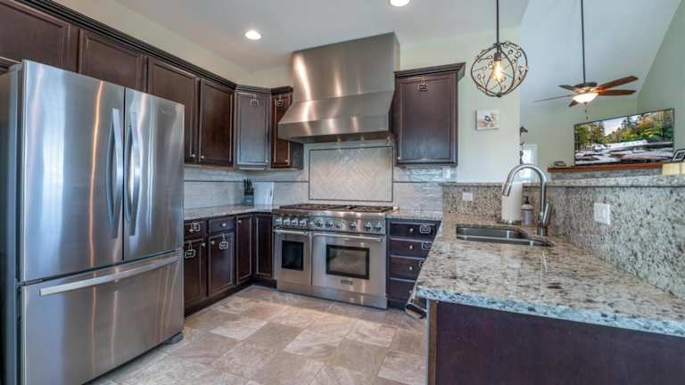 Die Zimmer umfassen zwei separate Schlafzimmer und sind Teil eines Ferienhauses. Es gibt eine voll ausgestattete Küche, die einen Kühlschrank und einen Geschirrspüler beinhaltet.