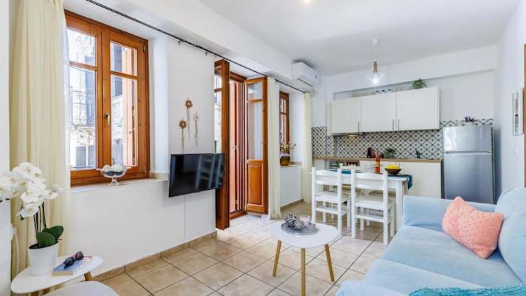 Charis_Skopelos of 3 Grace's house bietet Übernachtungsmöglichkeiten in einer Ferienwohnung, die mit einem Balkon und kostenlosem WLAN ausgestattet ist. Die Unterkunft verfügt über Klimaanlage und bietet modernen Komfort.