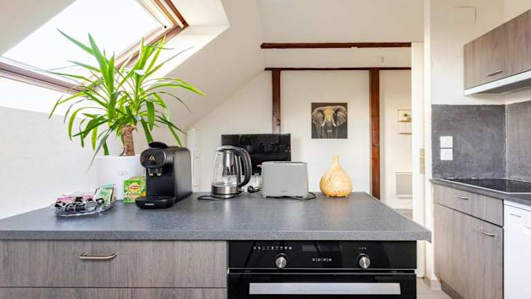 Charmant appart près Europa-Park Rulantica 30 min bietet Übernachtungsmöglichkeiten in einer modernen Ferienwohnung, die durch ihre Klimaanlage und die vorhandene Ausstattung besticht. Die Unterkunft ist auf die Bedürfnisse von Gästen ausgelegt, die eine komfortable und praktische Unterkunft suchen.