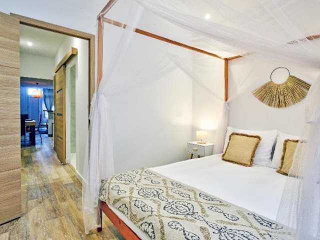 Die Ferienwohnung besteht aus einem Schlafzimmer und einem Wohnzimmer. Sie ist mit Klimaanlage ausgestattet und verfügt über eine voll ausgestattete Küche mit einem Kühlschrank und einer Kaffeemaschine. Ein Badezimmer mit Dusche und kostenlosen Pflegeprodukten ist ebenfalls vorhanden. Handtücher und Bettwäsche werden bereitgestellt.