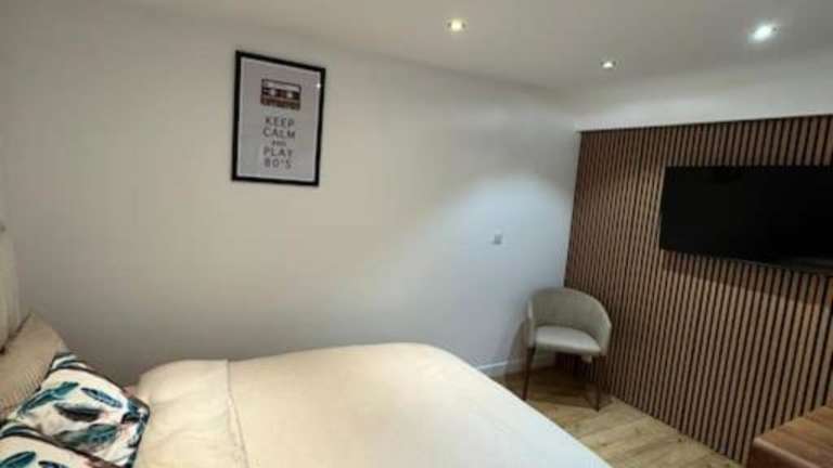 Die Ferienwohnung umfasst 1 Schlafzimmer, eine Küche, die mit einem Kühlschrank und einem Ofen ausgestattet ist, sowie einen Flachbild-TV und einen Sitzbereich. Das Badezimmer ist mit einer Dusche versehen, und Handtücher sowie Bettwäsche werden bereitgestellt.