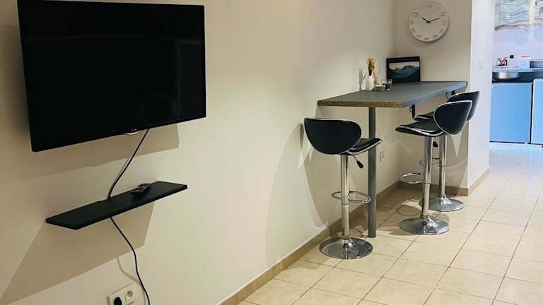 Die Ferienwohnung ist ausgestattet mit einem Schlafzimmer, einem Badezimmer, Bettwäsche, Handtüchern und einem Flachbild-TV. Eine voll ausgestattete Küche ist ebenfalls vorhanden, ebenso eine Terrasse mit Stadtblick. Die Unterkunft verfügt über Annehmlichkeiten wie Klimaanlage und Heizung.