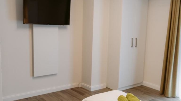 Die Ferienwohnung verfügt über zwei Schlafzimmer, ein Wohnzimmer mit einem Flachbild-TV, eine gut ausgestattete Küche inklusive Kühlschrank und Geschirrspüler sowie zwei Badezimmer mit Dusche. Handtücher und Bettwäsche werden bereitgestellt. Die Terrasse bietet Stadtblick.