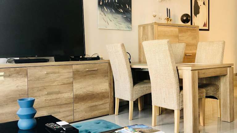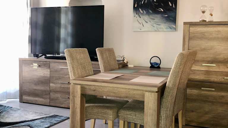 Die Ferienwohnung besteht aus 2 Schlafzimmern, einem Wohnzimmer, einer voll ausgestatteten Küche mit Kühlschrank und Kaffeemaschine sowie einem Badezimmer, das mit einem Bidet und einer Dusche ausgestattet ist. Zur Unterhaltung stehen ein Flachbild-TV mit Satellitenkanälen und ein Blu-ray-Player zur Verfügung.