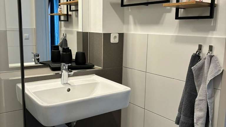 Die Ferienwohnung umfasst 1 Schlafzimmer, ein Wohnzimmer sowie ein Badezimmer mit Dusche. Zur Ausstattung gehören ein Flachbild-TV, eine gut ausgestattete Küche mit Kühlschrank und Geschirrspüler sowie ein Balkon mit Stadtblick. Handtücher und Bettwäsche werden bereitgestellt.
