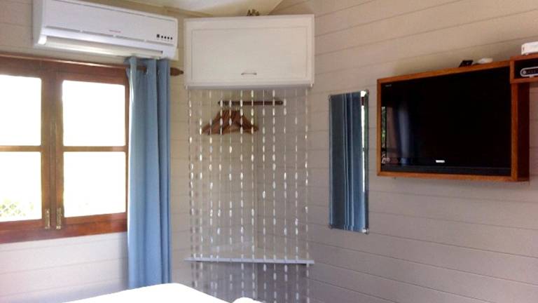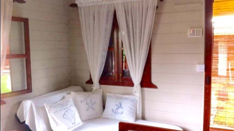 Das klimatisierte Ferienhaus verfügt über ein gemütliches Schlafzimmer und bietet Platz für eine erholsame Nachtruhe. Der Balkon bietet einen herrlichen Blick auf den umzäunten Garten, wo Sie sich entspannen und die Natur genießen können. Die gut ausgestattete Küche ermöglicht es Ihnen, Ihre eigenen Mahlzeiten zuzubereiten, und der Wasserkocher sorgt für eine einfache Zubereitung von Tee und Kaffee. Sat-TV ist ebenfalls vorhanden, damit Sie Ihre Lieblingssendungen nicht verpassen.