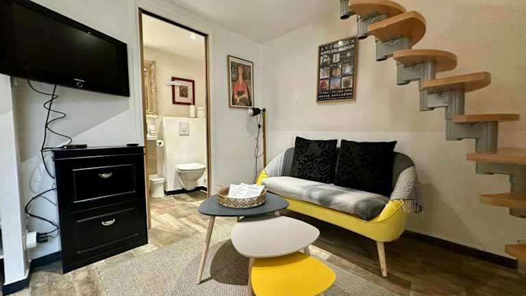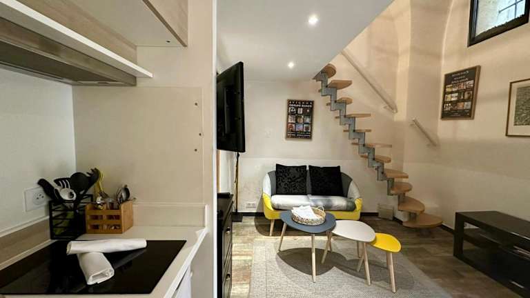 L'Ecusson - Duplex with exterior! ist eine Ferienwohnung, die Gästen Zugang zu einer voll ausgestatteten Küche bietet. Die Unterkunft ist klimatisiert und verfügt über ein Schlafzimmer sowie ein Badezimmer mit Dusche und Haartrockner. Handtücher und Bettwäsche werden zur Verfügung gestellt.