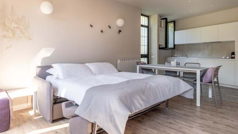 Die Residenza Ortensia bietet komfortable Apartments mit einem Schlafsofa, einem Sitzbereich und einem Flachbild-Sat-TV. Jedes Apartment verfügt über eine gut ausgestattete Küche mit einem Essbereich, in dem Sie Ihre Mahlzeiten zubereiten können. Ein Safe und ein eigenes Badezimmer mit kostenfreien Pflegeprodukten sind ebenfalls vorhanden. Zur weiteren Ausstattung gehören ein Kühlschrank, ein Geschirrspüler, eine Mikrowelle, eine Kaffeemaschine und ein Wasserkocher. WLAN nutzen Sie in allen Bereichen der Unterkunft kostenfrei.