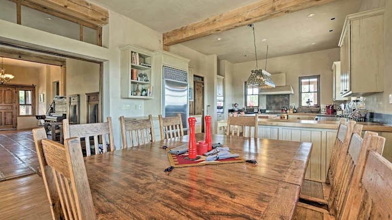 Das Epic Mountain Estate with Views - South of Santa Fe! bietet Selbstversorger-Unterkünfte, so dass Sie Ihre Mahlzeiten nach Ihren eigenen Vorlieben zubereiten können. In der gut ausgestatteten Küche finden Sie alles, was Sie brauchen, um köstliche Gerichte zuzubereiten. Alternativ können Sie auch die umliegenden Restaurants erkunden und die lokale Küche genießen.