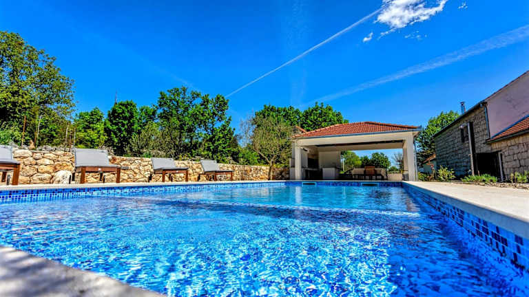 Das Charming Stone House with Private Pool & Jacuzzi - Holiday Home Vera bietet Bergblick und ein Ferienhaus mit einer Veranda bzw. einem Patio. Es verfügt über einen eigenen Außenpool, einen Garten und Grillmöglichkeiten. Die Unterkunft ist mit kostenlosem WLAN und kostenfreiem Privatparkplatz ausgestattet und wird von einem privaten Gastgeber geführt.