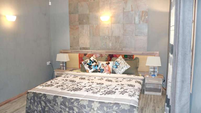 Die Ferienwohnung verfügt über eine Klimaanlage, Sitzplätze, eine Küche mit Kühlschrank und einen TV.