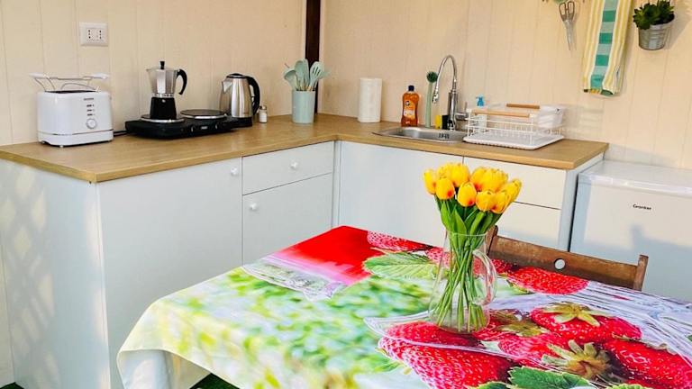 Die Ferienwohnung umfasst 2 klimatisierte Schlafzimmer sowie ein Badezimmer, das mit einem Bidet, einer Dusche und kostenlosen Pflegeprodukten ausgestattet ist. Die Küche bietet Annehmlichkeiten wie einen Kühlschrank, eine Mikrowelle, eine Herdplatte, eine Kaffeemaschine und einen Wasserkocher.