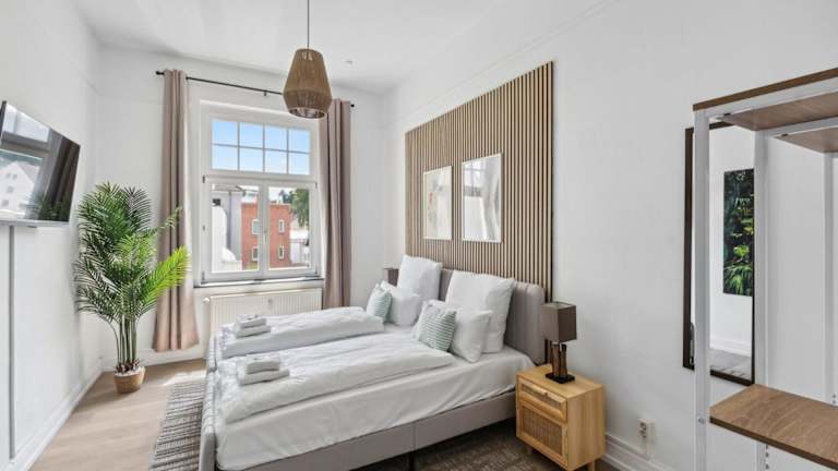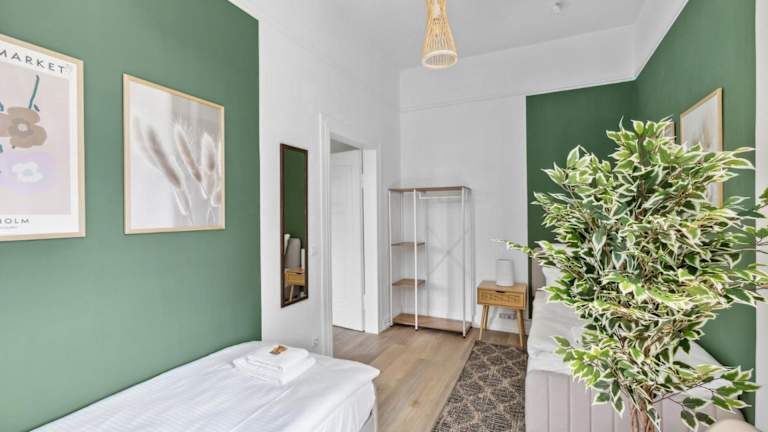 Die Ferienwohnung besteht aus 2 Schlafzimmern, einem Wohnzimmer und einer voll ausgestatteten Küche, die mit einem Kühlschrank und einer Kaffeemaschine ausgestattet ist. Zudem steht ein Badezimmer mit einer Dusche und kostenlosen Pflegeprodukten zur Verfügung. Handtücher und Bettwäsche werden bereitgestellt.