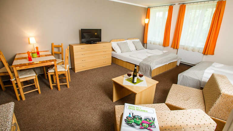 Die Umgebung des Chata Nisanka bietet eine Vielzahl von Sport- und Freizeitmöglichkeiten. Wandern, Skifahren und Radfahren sind beliebte Aktivitäten in der Region. Nach einem aktiven Tag können Sie im Garten des Hotels oder in der Gemeinschaftslounge entspannen.