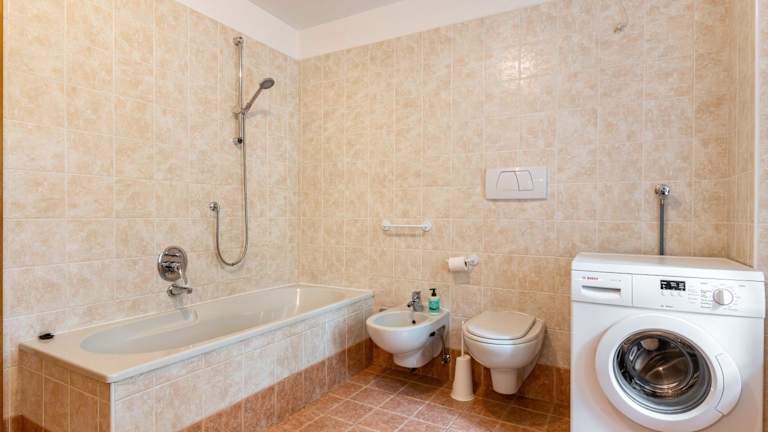 Die Ferienwohnung umfasst vier Schlafzimmer, ein Wohnzimmer, einen TV und eine gut ausgestattete Küche. Zwei Badezimmer mit Dusche sowie Handtücher und Bettwäsche sind ebenfalls vorhanden.