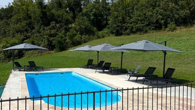 Das Ferienhaus im Château des Loups - Les Pommiers verfügt über 4 geräumige Schlafzimmer, ein gemütliches Wohnzimmer und eine gut ausgestattete Küche. Jedes der 4 Badezimmer ist mit einer Dusche und einer Badewanne ausgestattet. Handtücher und Bettwäsche werden gestellt, so dass Sie sich um nichts kümmern müssen. Von der Terrasse aus haben Sie einen herrlichen Blick auf den Pool.