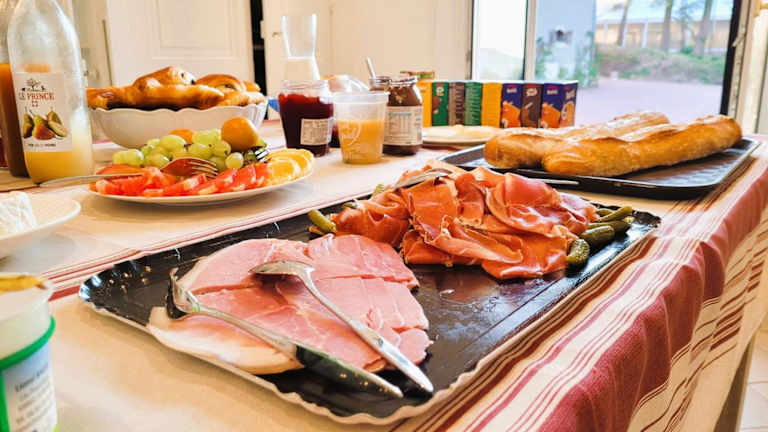 Jeden Morgen wird ein köstliches kontinentales Frühstück im Château des Vierres serviert. Starten Sie mit frischen Backwaren und anderen Leckereien in den Tag. Nutzen Sie auch die Grillmöglichkeiten, um ein köstliches Abendessen zuzubereiten und im Freien zu genießen.