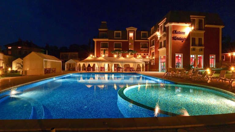 Das Chateau Montagne Hotel Troyan ist ein elegantes Hotel in Troyan, das mit seinen stilvollen Zimmern, kostenfreiem WLAN und Klimaanlage einen angenehmen Aufenthalt bietet. Genießen Sie die Fusion-Küche im Restaurant und entspannen Sie im Fitnesscenter und den Wellnesseinrichtungen. Der Sommergarten, die Bar im Freien und der Swimmingpool bieten weitere Möglichkeiten zur Erholung. Das Hotel ist auch ein idealer Ausgangspunkt, um das nahegelegene Skigebiet Beklemeto und den Nationalpark Zentralbalkan zu erkunden.