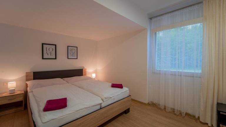 Das Chatová osada Kotva Prístav bietet einen eigenen Strandbereich, an dem Sie sich entspannen und die Sonne genießen können. In der Umgebung haben Sie die Möglichkeit zum Skifahren und können die Schönheit der Natur erkunden. Der Kinderspielplatz sorgt für Unterhaltung und Spaß für die jüngeren Gäste.